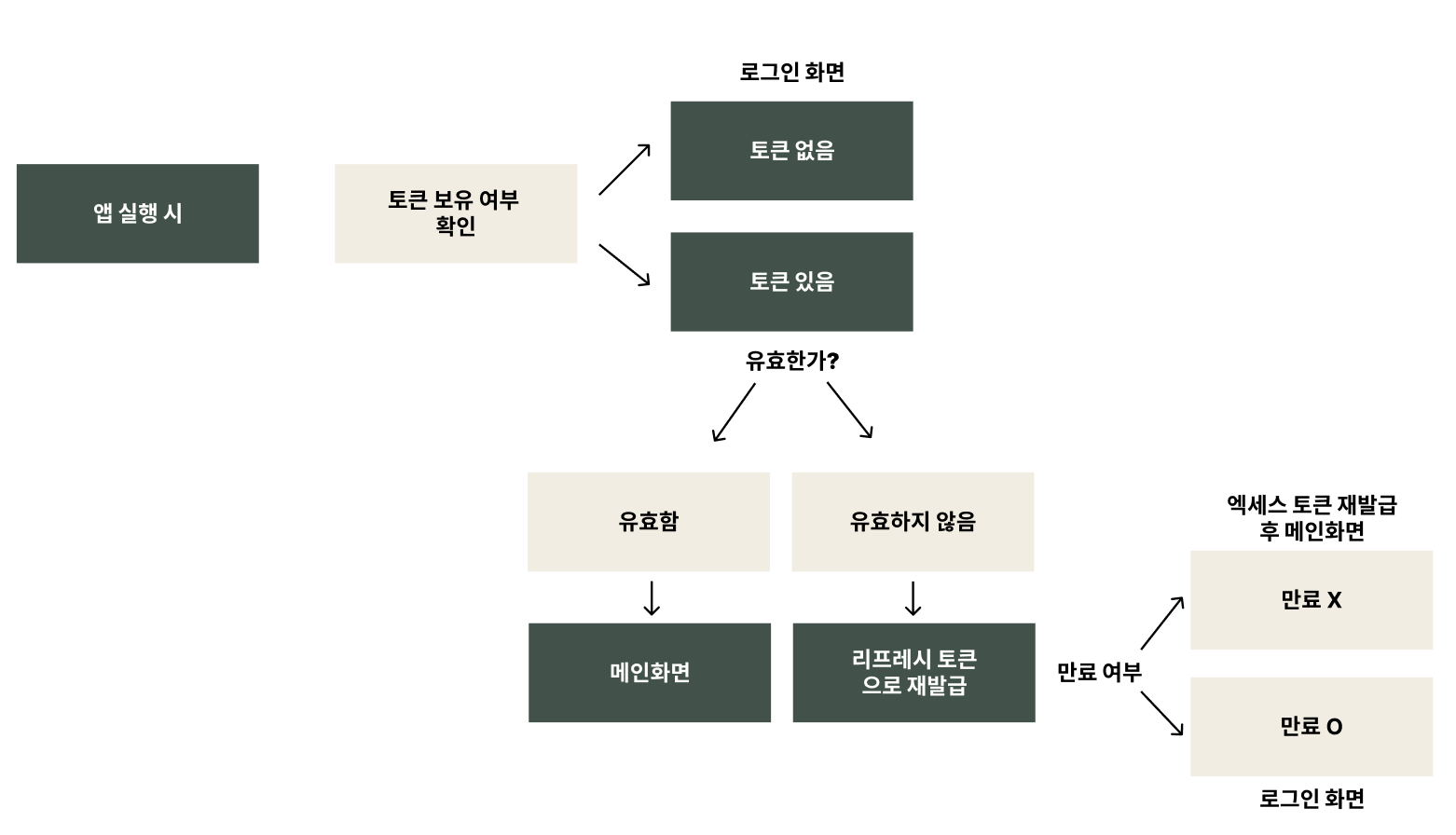 앱 실행 시 KeyChain에 저장된 토큰이 있는지 확인하고, 토큰이 존재한다면 유효한지 확인합니다.