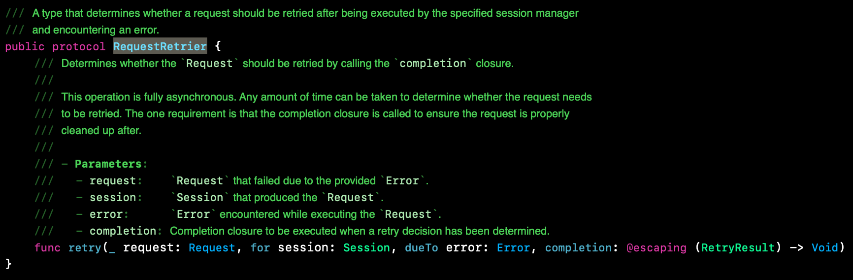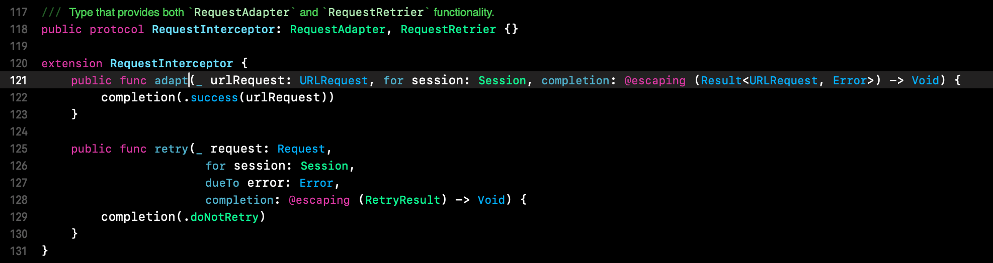 RequestAdaptor와 RequestRetrier를 채택하고 있습니다.