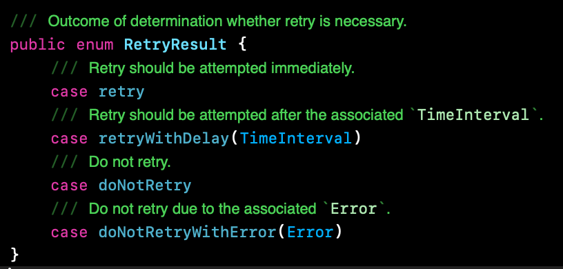completion으로 RetryResult를 넘겨 재시도 유형에 대해 알려줍니다.